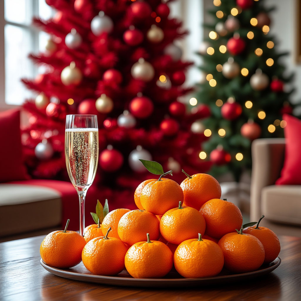 Хвойная ель — символ вечной жизни, заимствованный у немцев и прижившийся в России. К ней добавились уникальные советские традиции: аромат мандаринов (единственных доступных зимой фруктов), салат «Оливье» и торжественный бой курантов Спасской башни.